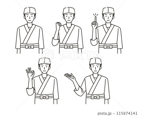 板前の男性のイラストセット