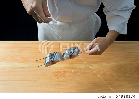 鰆に塩を振る板前