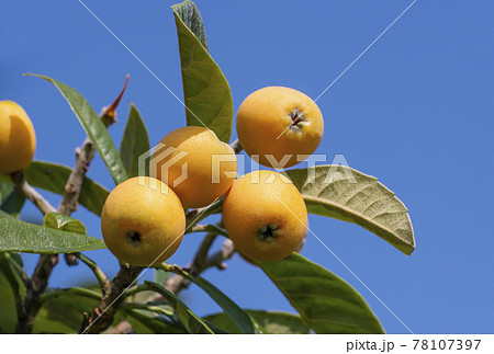びわの実 枇杷の木 収穫時期のビワの実 果樹 果物 イメージ素材