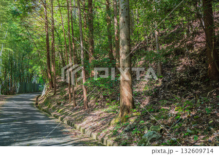 落ち葉散り積もる針葉樹林 京都府笠置町
