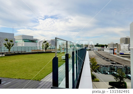 ステーションヒル枚方の展望テラス 枚方デルタ6F空庭の芝生と京阪枚方市駅が見える風景 大阪府枚方市