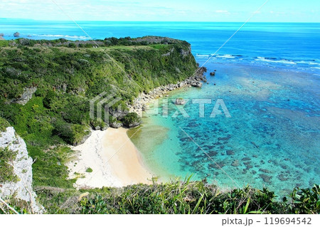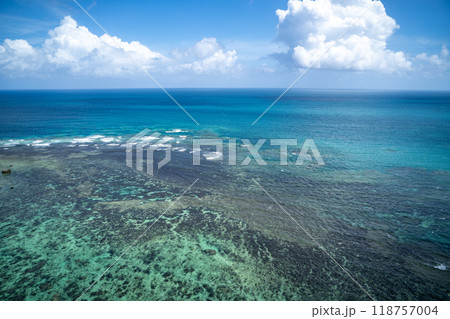 宮城島の果報バンタの珊瑚礁の海