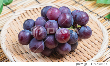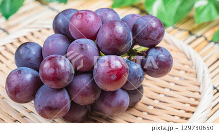 竹ざるに盛られたピオーネピオーネ, 葡萄, ぶどう, 国産ぶどう, 巨峰, 秋の果物, フルーツ,