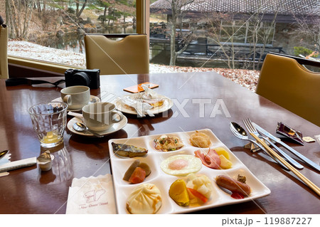 冬の3×3トレイ窓際の美しい朝食セット