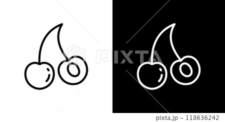 さくらんぼの断面のシンプルなラインアイコン