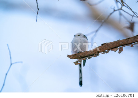 木の枝にとまってあたりの様子を伺っているシマエナガ