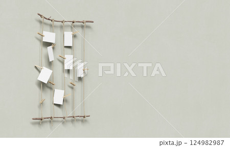 Blank Paper Hanging on Branch with Wooden Clip Mock up. 3D Rendering