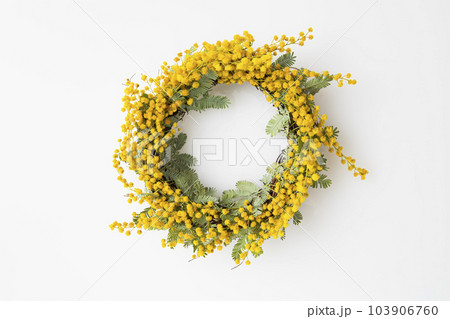 ミモザの花のリースのクローズアップ