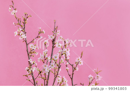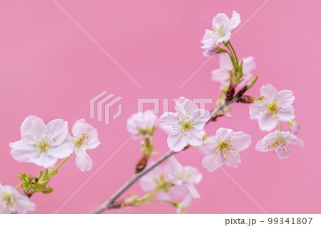 桜 啓翁桜 ピンク色の背景