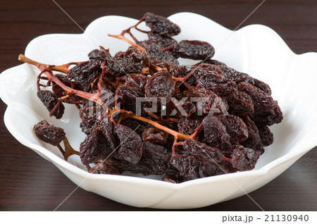 皿の上の枝つき干しぶどう 中サイズ アップ