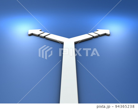 先が左右に分かれた矢印。岐路と選択肢を表す抽象的なコンセプト。