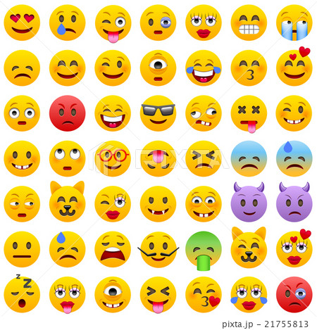 Emoticons set. Emoji faces emoticon funny smile vector collection