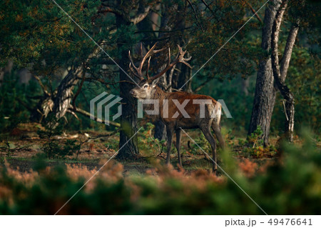 イエローストーン国立公園の林に中にたたずむアメリカアカシカ