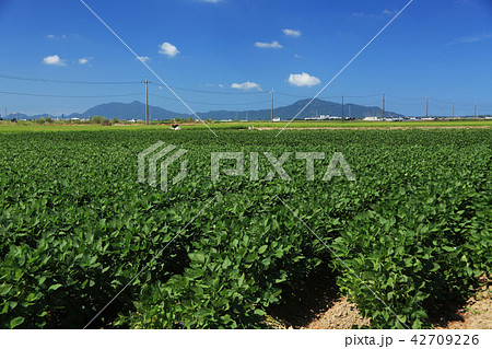 夏の田園風景 大豆畑 休耕田代替作物