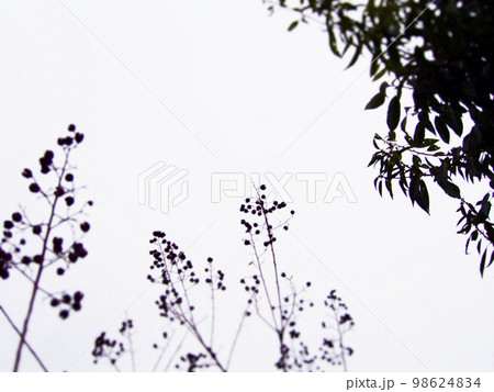枯れた冬の草木のシルエット