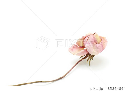 バラの蕾みのドライフラワー一輪、白バック