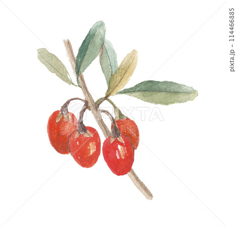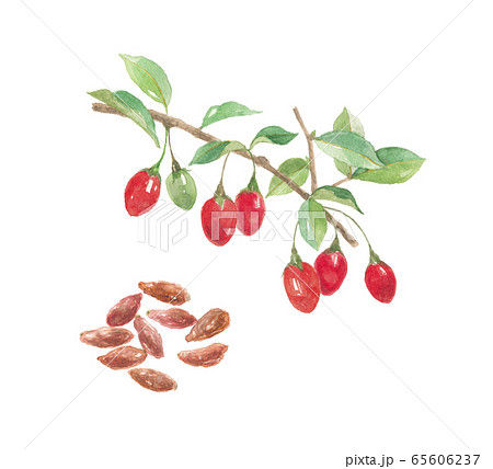 漢方生薬「枸杞の実(クコ)」手描き水彩風イラスト