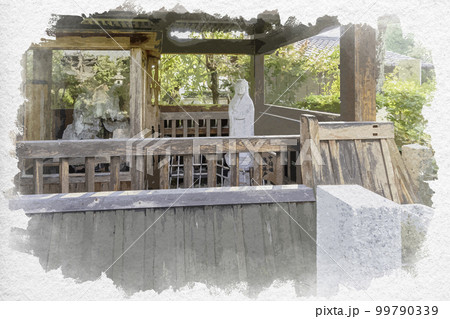 水彩画風 石光寺 中将姫 染の井 奈良県葛城市