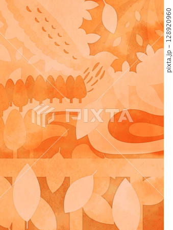 木々と落ち葉を描いた水彩風の秋の抽象風景イラスト