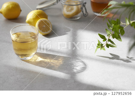 Minimal Aesthetic Beverages in Natural Light with Greenery.