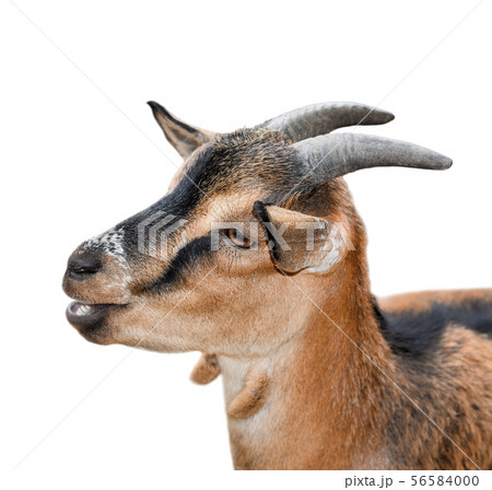 Vector illustration of a cute goat. Goat isolated on a white background. Childrens style. Vector illustration. Doodle style.