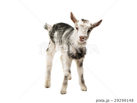 White goats in barn. Domestic goats in the farm. Lovely white kid goats