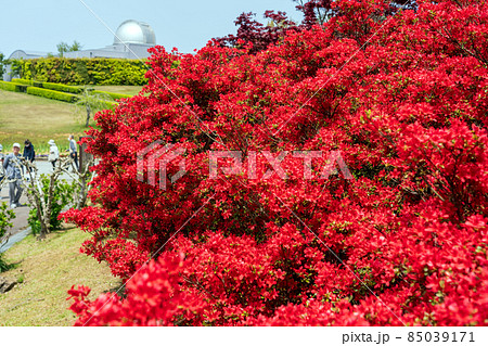 のとキリシマツツジノの真紅の花が咲くやなぎだ植物公園