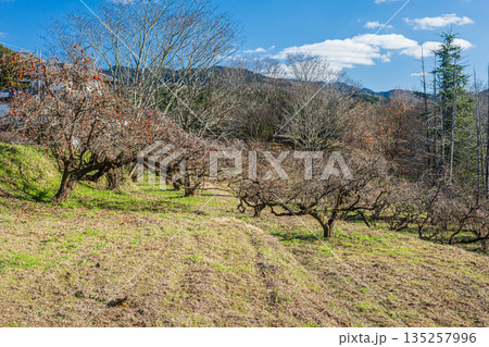 秋の柿畑の光景 和歌山県伊都郡かつらぎ町 紀の川フルーツライン