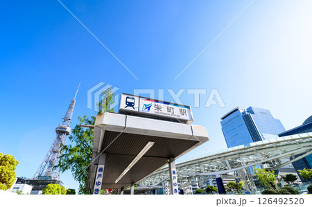 名古屋市中区・栄 セントラルパーク 名古屋市営地下鉄 栄駅出入り口と中部電力 MIRAI TOWER