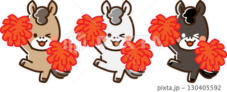 ポンポンを持って笑顔で応援する馬トリオ