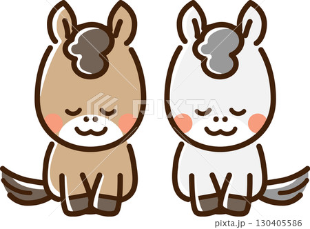 色々な毛色の馬のイラストセット