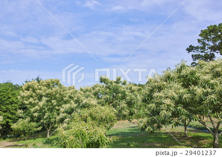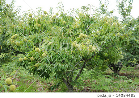 たわわに実をつけた栗の木 収穫近し秋の味 待ち遠しい栗拾い イメージ
