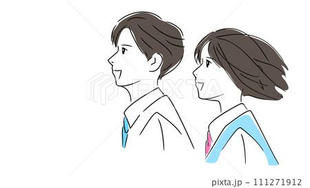 合唱祭で声をあわせて歌う男女の中学生、応援や声援を送る高校生の横顔、ベクターシンプルイラスト素材