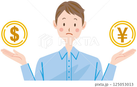 スマホで為替を見て円安に頭を抱えるビジネスマンのイラスト
