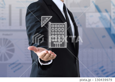 新しい会社や企業を紹介するスーツを着た男性のイメージ画像