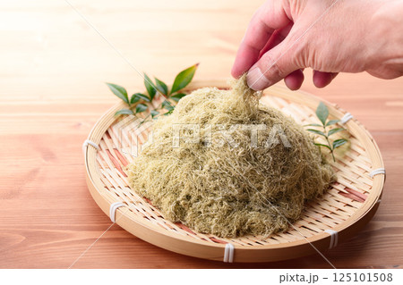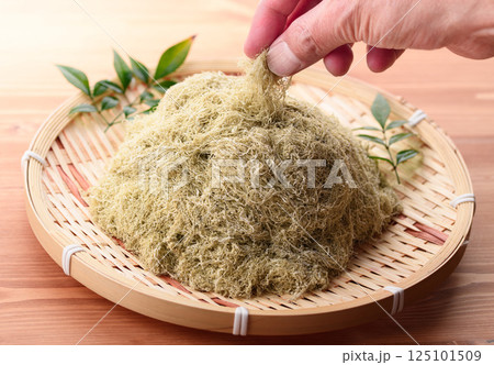竹ざるに盛りつけた 北海道 利尻産 とろろ昆布