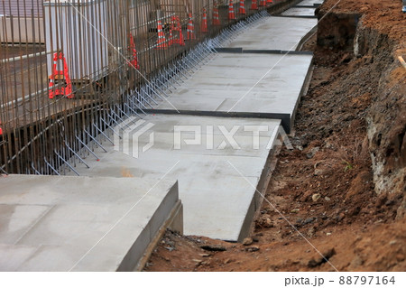 ごみ捨て禁止の看板越しに見る宅地造成中風景