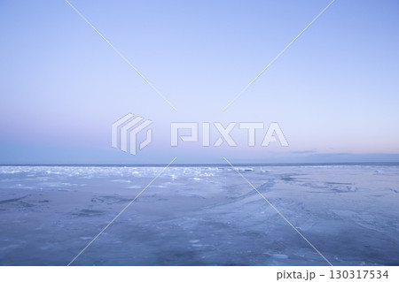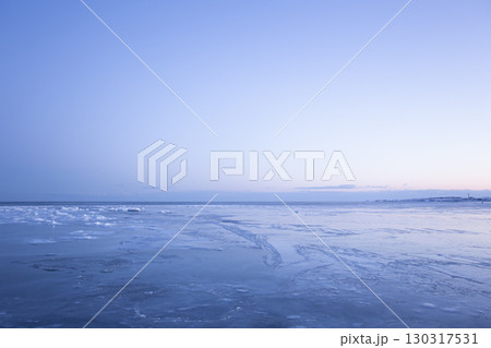 北海道・根室港に接岸した流氷 夕日 / Nemuro, Japan