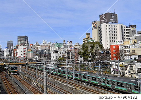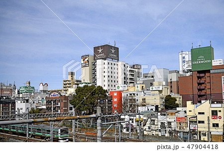 日本の東京都市景観 鶯谷駅前のホテル街などを望む