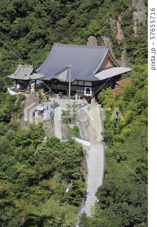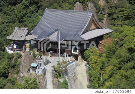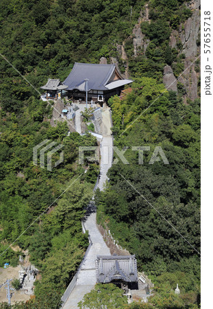 四国霊場第73番札所「出釈迦寺」奥の院 捨身ヶ嶽禅定(背景は讃岐平野、瀬戸内海、瀬戸大橋)
