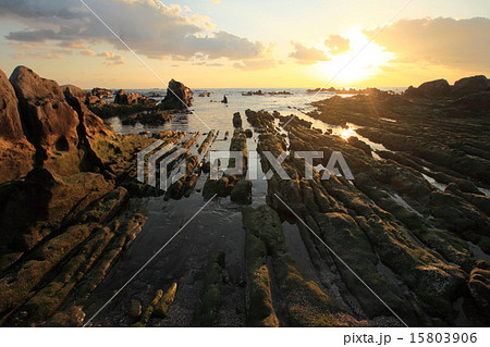 根本海岸屏風岩の落日