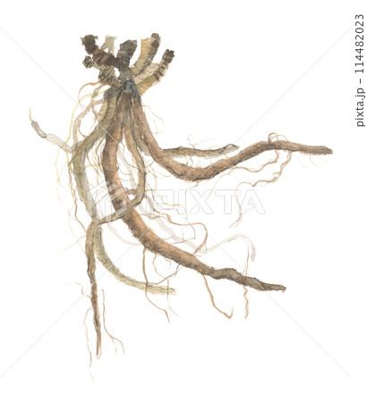 水彩で描いたホソバオケラの根 ソウジュツ