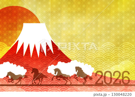 2026年午年の年賀状素材、立ち上がる馬