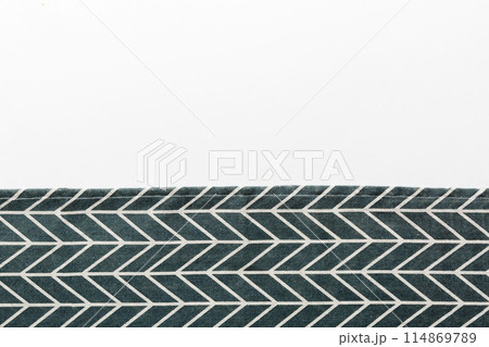 top view with green kitchen napkin isolated on table background. Folded cloth for mockup with copy space, Flat lay. Minimal style