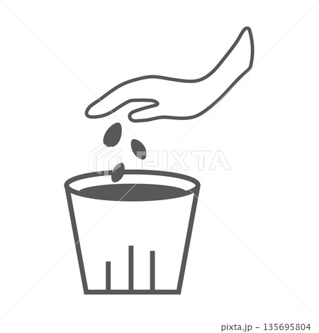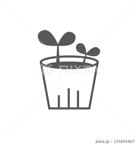 植物の芽が出る成長イメージのモノクロ線画アイコン