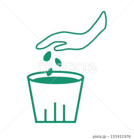 植物の芽が出る成長イメージのグリーン線画アイコン