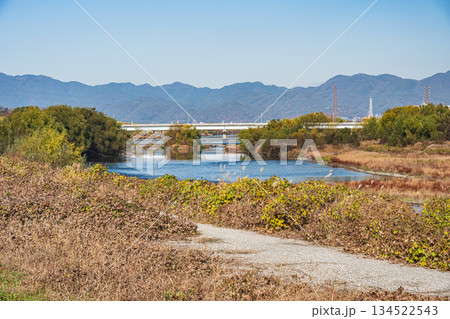 冬の桂川河川敷風景 京都市