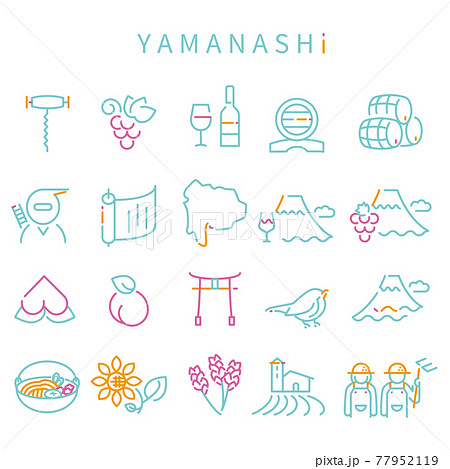 線画 3色アイコン 山梨県 ミント