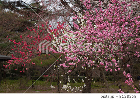 梅園に満開に咲く紅白の梅の花