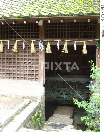 京都、宇治上神社の境内にある桐原水の建屋、全景、桐原水と称される湧き水、宇治七名水の内で唯一現存